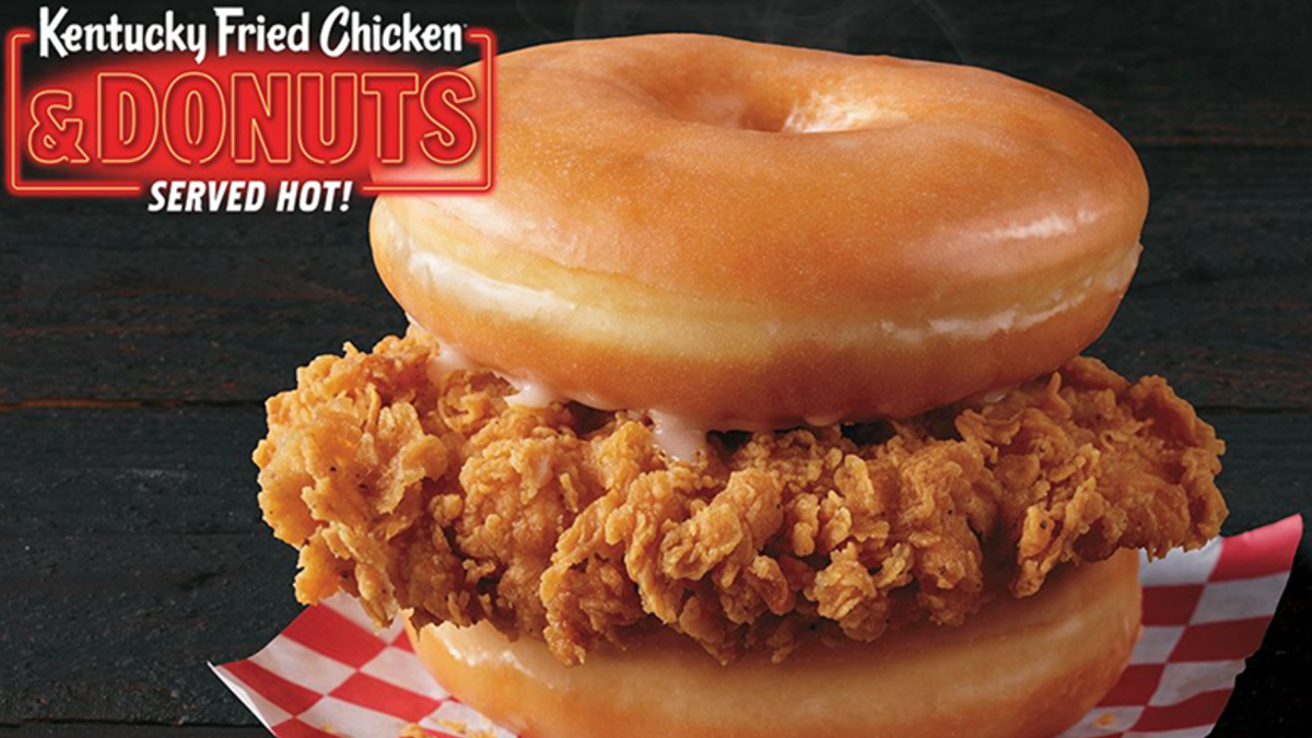 So, what can customers at these lucky KFC locations test out? KFC will offer a basket that pairs chicken on the bone or chicken tenders with one or two doughnuts. There will also be a sandwich option. The chicken sandwich swaps out the tradition bun for two glazed doughnuts. The chicken-and-doughnut meal will cost $5.50 for one doughnut and $7.50 for two doughnuts. The sandwich will cost $6, or as a combo meal for $8. KFC said customers can also add a doughnut, which are served hot, to any meal at these locations for $1.